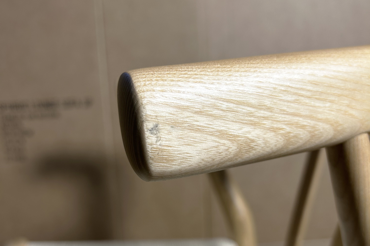 ・肘掛け先端部側面に黒い塗装不良有り