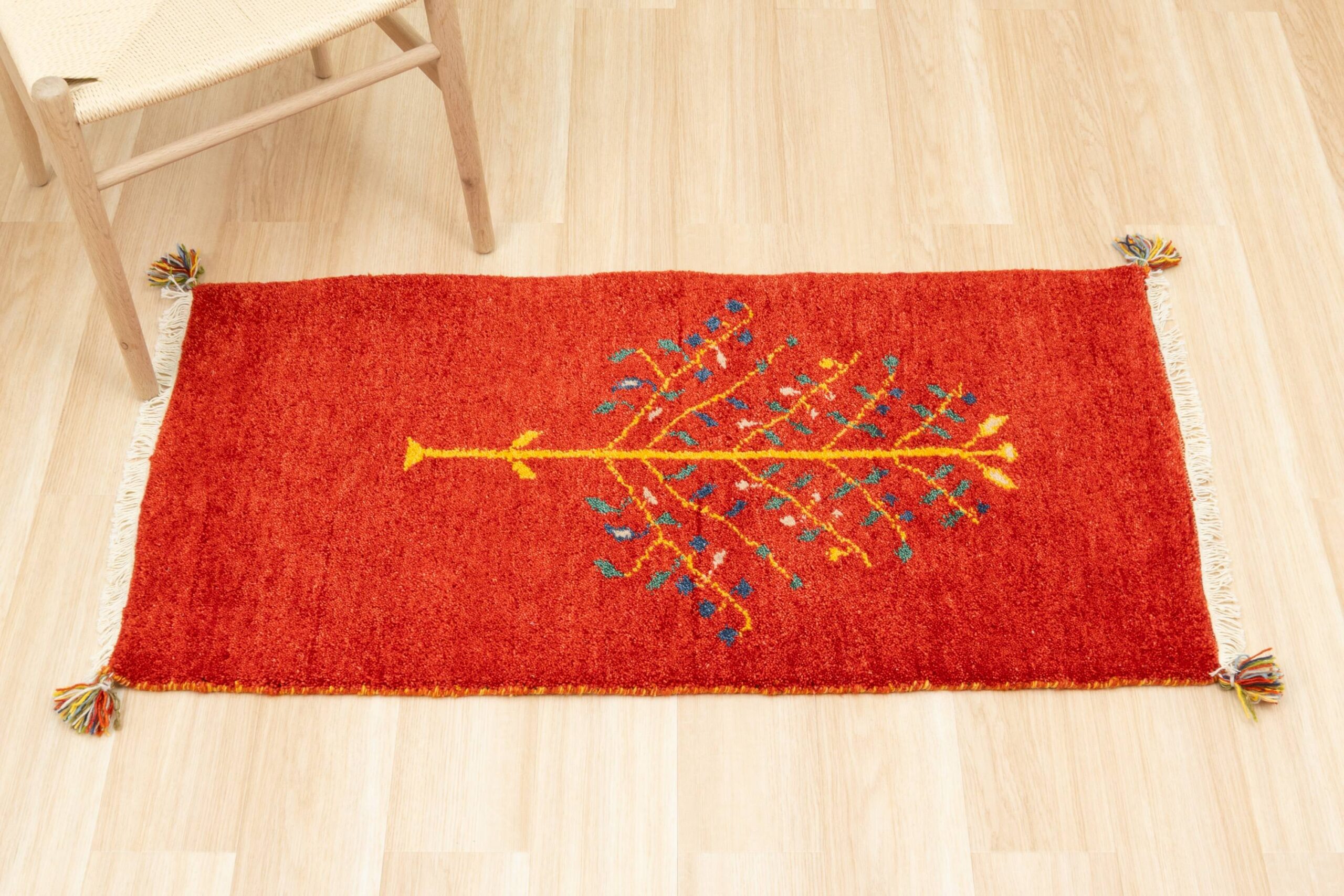 ギャッベとはペルシャ語で目が粗くて毛足が長い絨毯を意味する。ルーツはイラン・イスラム共和国の南西部に位置するシラーズ州を遊牧する部族カシュガイ族、ルリ族などによって織られる遊牧民の手織りの絨毯のことを指します。羊の毛をざっくりと織ってふかふかに仕上げているので厚みと重みがあり、へたりにくいのがポイント。