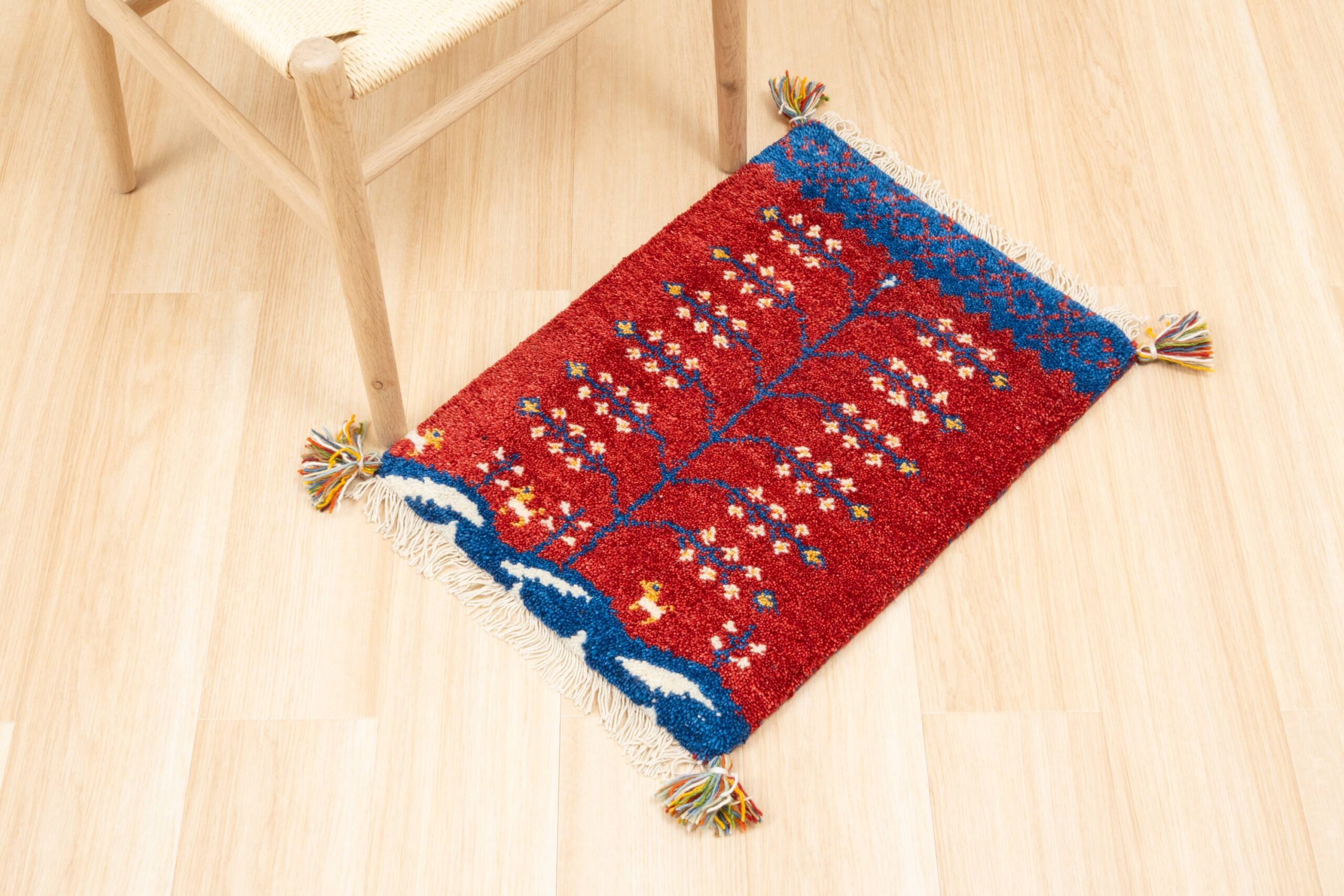 #ラグ#ブルー#レッド#キッチン#ウール#コットン#4060