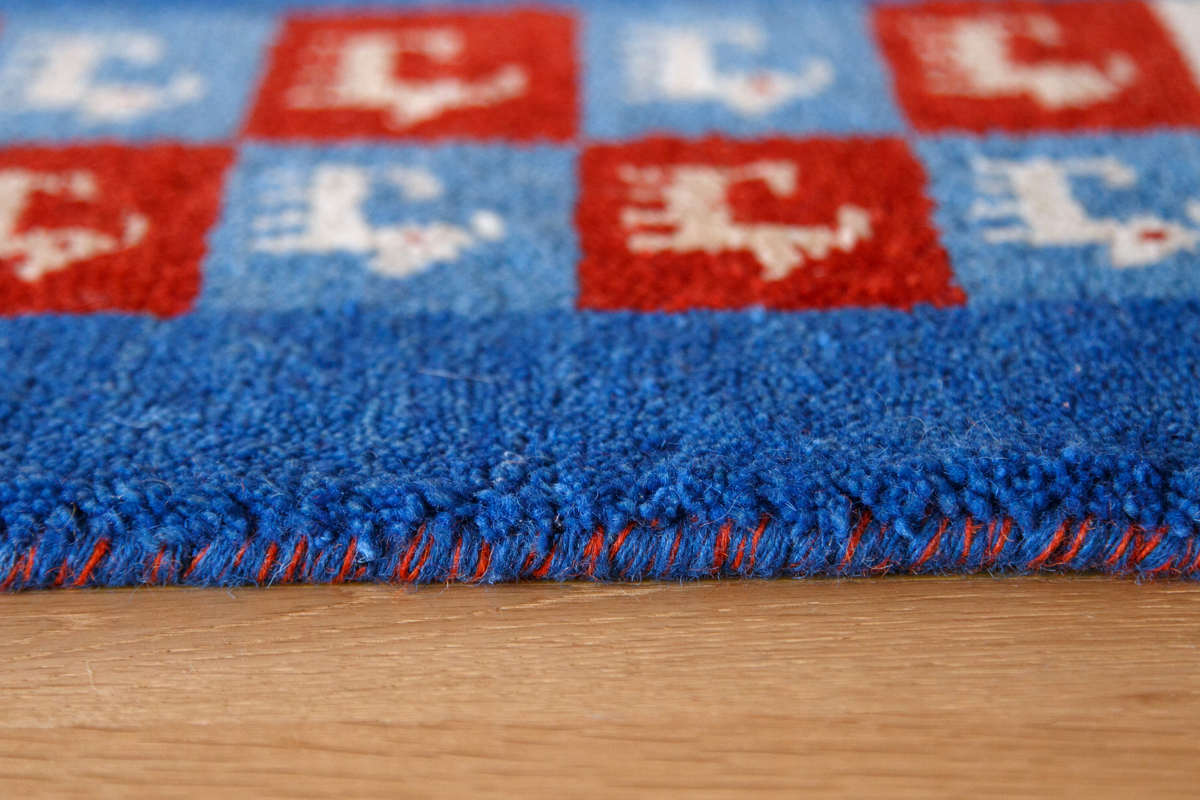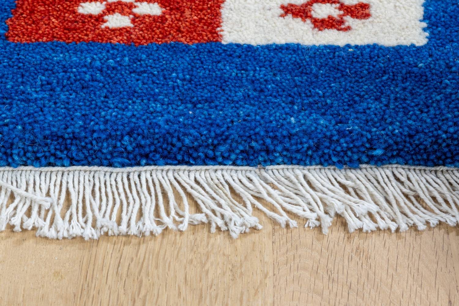 ギャッベとはペルシャ語で目が粗くて毛足が長い絨毯を意味する。ルーツはイラン・イスラム共和国の南西部に位置するシラーズ州を遊牧する部族カシュガイ族、ルリ族などによって織られる遊牧民の手織りの絨毯のことを指します。羊の毛をざっくりと織ってふかふかに仕上げているので厚みと重みがあり、へたりにくいのがポイント。