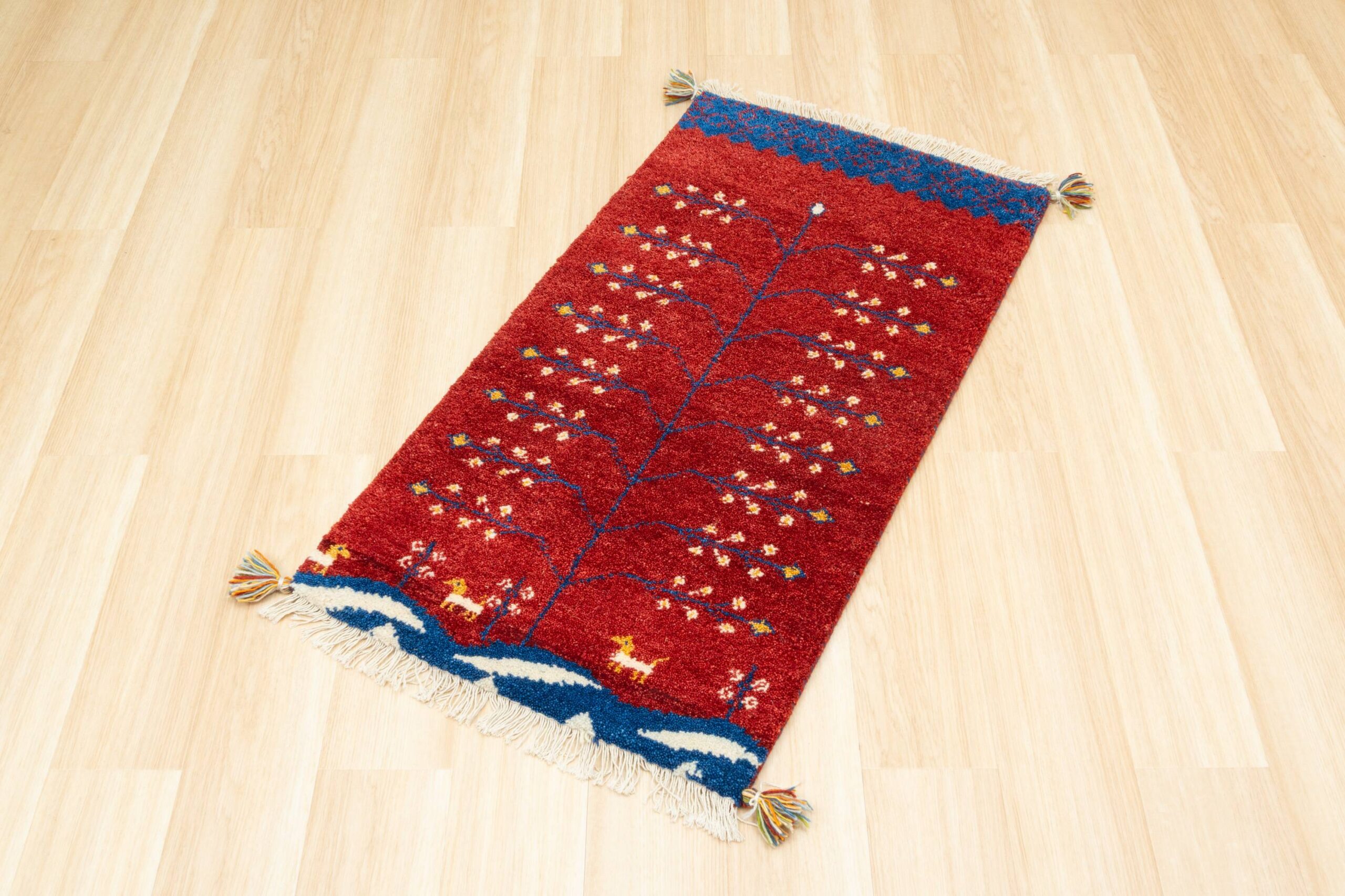 ギャッベとはペルシャ語で目が粗くて毛足が長い絨毯を意味する。ルーツはイラン・イスラム共和国の南西部に位置するシラーズ州を遊牧する部族カシュガイ族、ルリ族などによって織られる遊牧民の手織りの絨毯のことを指します。羊の毛をざっくりと織ってふかふかに仕上げているので厚みと重みがあり、へたりにくいのがポイント。