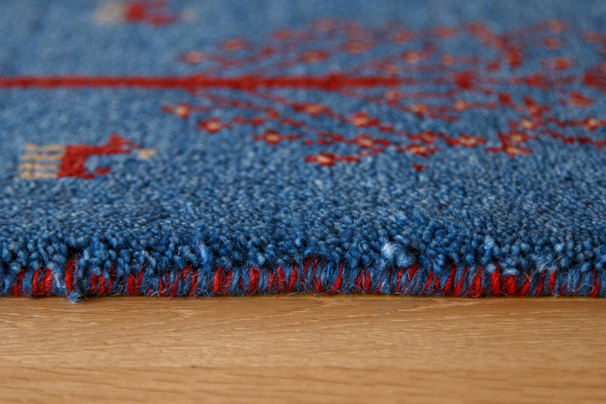 ギャッベとはペルシャ語で目が粗くて毛足が長い絨毯を意味する。ルーツはイラン・イスラム共和国の南西部に位置するシラーズ州を遊牧する部族カシュガイ族、ルリ族などによって織られる遊牧民の手織りの絨毯のことを指します。羊の毛をざっくりと織ってふかふかに仕上げているので厚みと重みがあり、へたりにくいのがポイント。